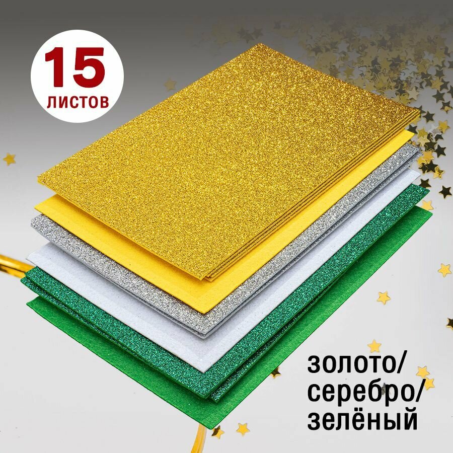 Купить Фетр однотонный жесткий глиттерный 2 мм / 200 х 300 мм (ассорти 15 шт)