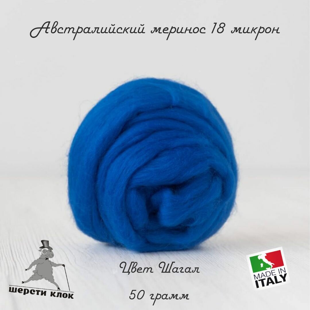 Шерсть для валяния австралийский меринос 18 мкр, Италия, цвет Кобальт