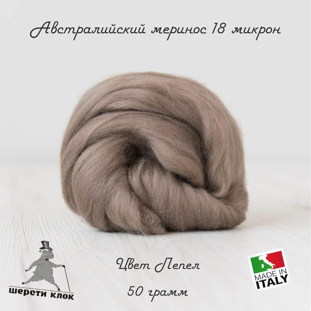 Купить Шерсть для валяния австралийский меринос 18 мкр, Италия, цвет Пепел
