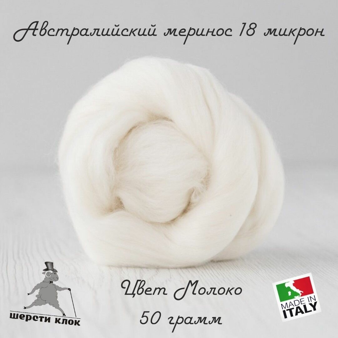 Купить Шерсть для валяния австралийский меринос 18 мкр, цвет Молоко