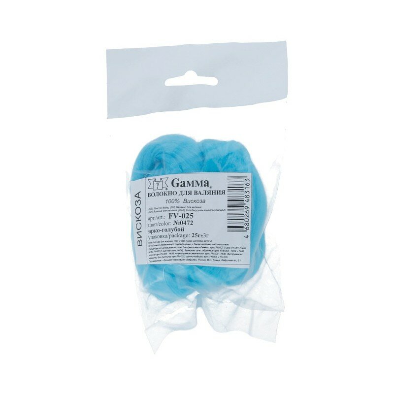 Купить Волокно для валяния "Gamma" FV-025 100% вискоза 25 г № 0472 ярко голубой