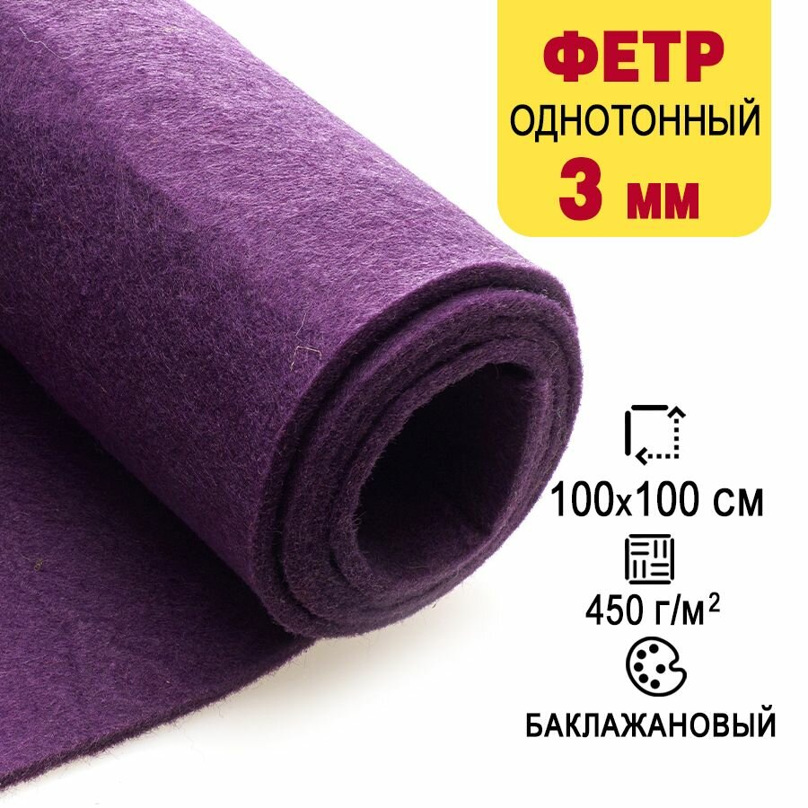 Купить Фетр однотонный твердый 3 мм в рулоне 100 х 100 см, баклажановый С72, плотность 450 г/м2