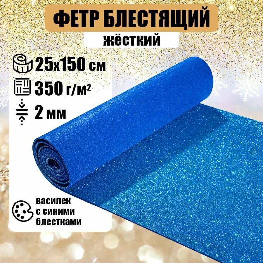 Фетр блестящий жесткий 2 мм 25х150 см, синий с синими блестками интересное: