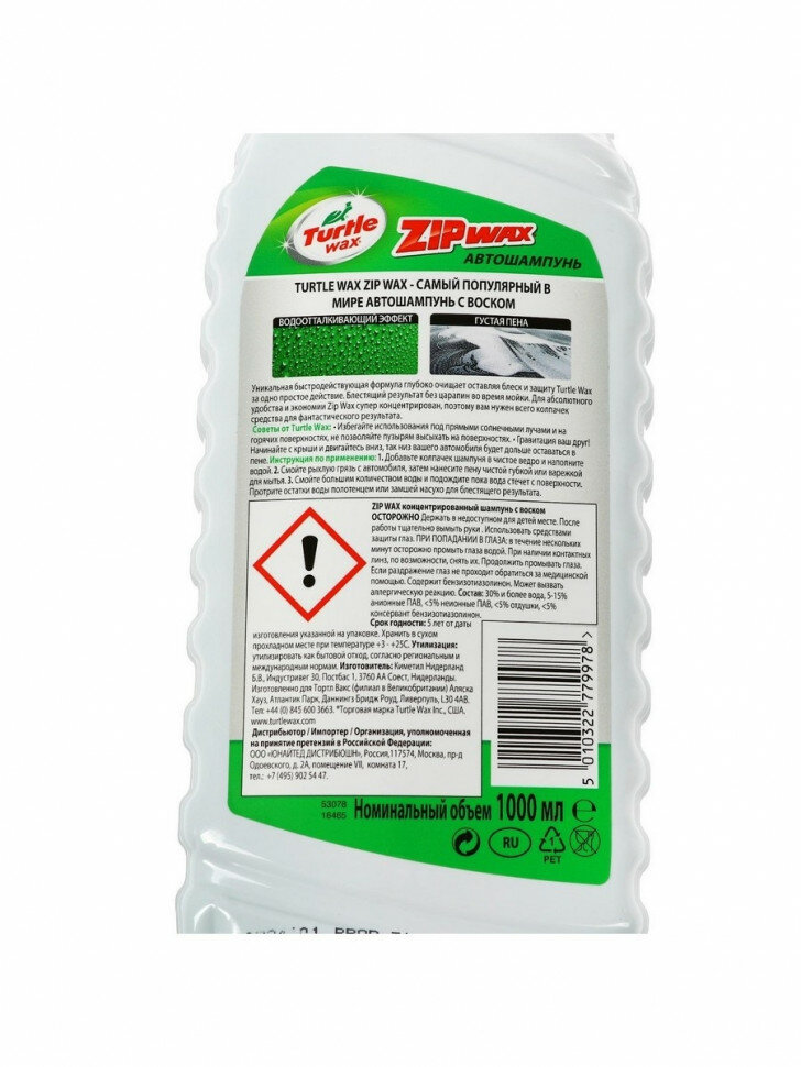 Автошампунь суперконцентрат с полирующим эффектом Turtle Wax Zip Wax, 1 л, контактный интересное: