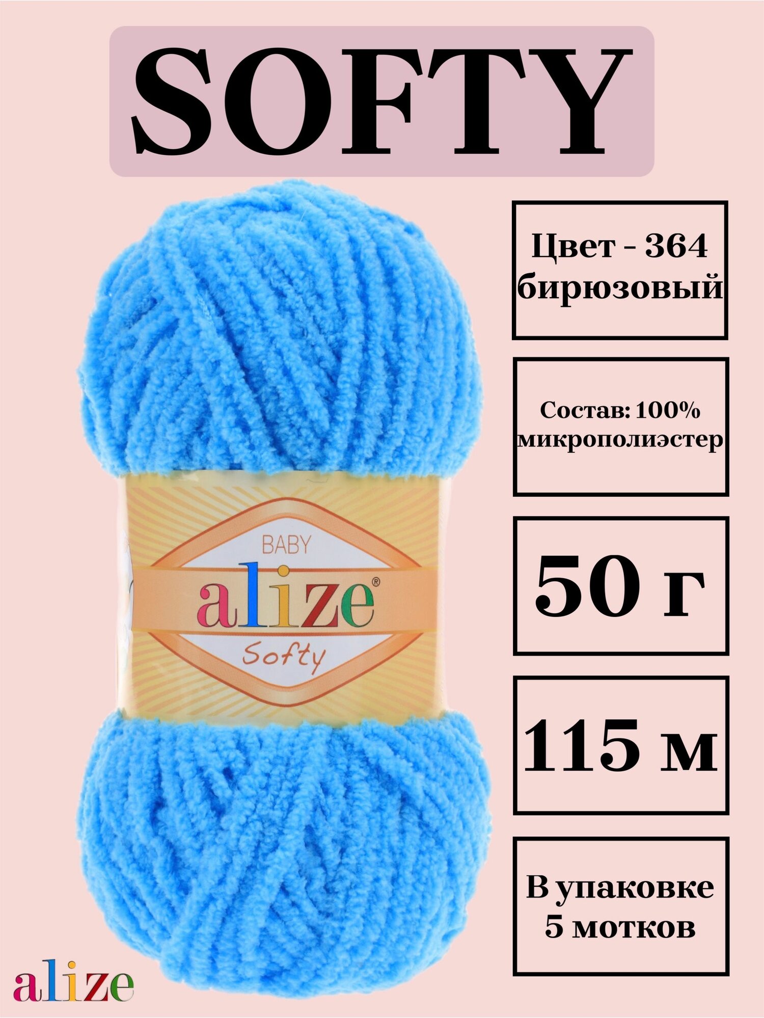 Купить Пряжа для вязания плюшевая Alize Softy, цвет 364 бирюзовый, 50г, 115м, 5 шт/упак