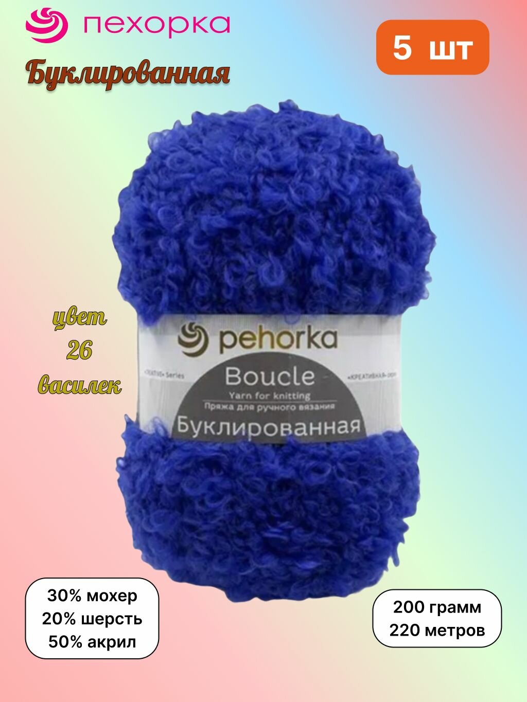 Купить Пряжа Пехорка Буклированная Василек (26) 5 мотков 200 г/220 м (30% мохер, 20% шерсть, 50% акрил) букле, pehorka boucle