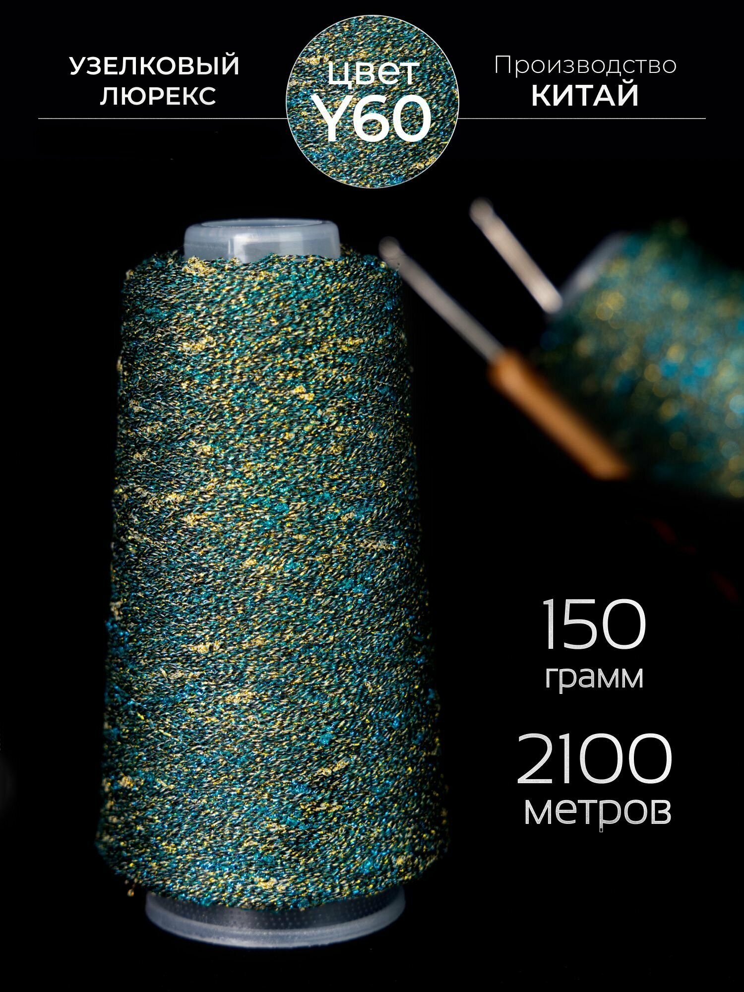 Бобинная пряжа для вязания спицами, крючком "Узелковый люрекс (шишибрики)" фантазийная тонкая с люрексом, хлопок, полиамид, 1 бобина 50 г, 700 метров