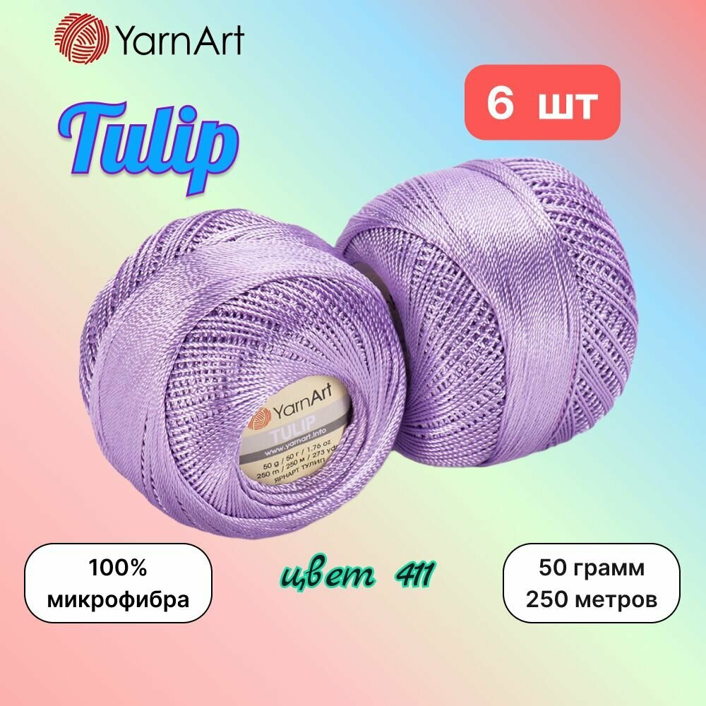 Пряжа TULIP (YarnArt), неж. сиреневый - 411, 100% микрофибра, 6 мотков, 50 г, 250 м.