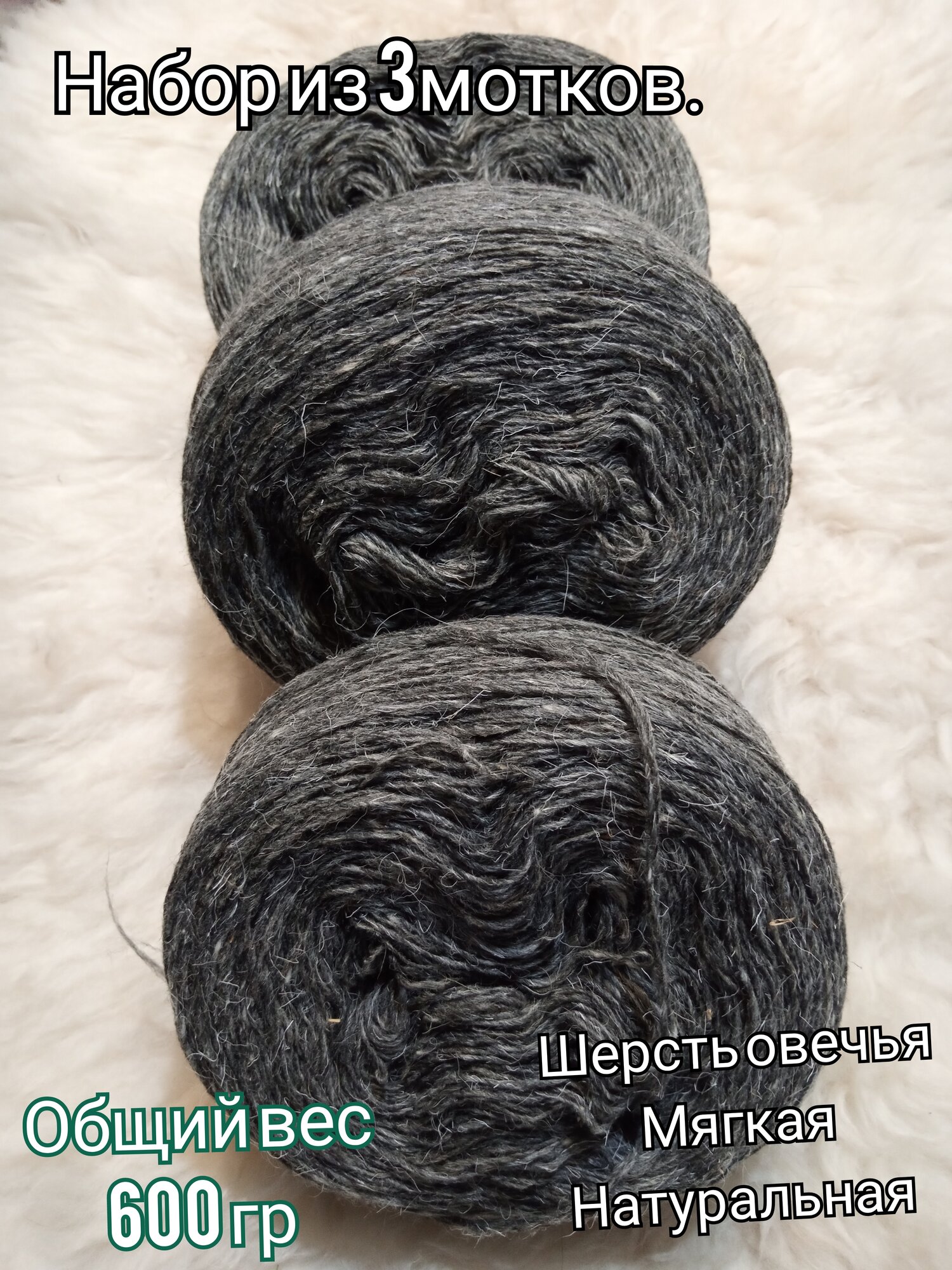 Купить Пряжа таблетка овечья шерсть 100%;3 мотка-600грграфит.