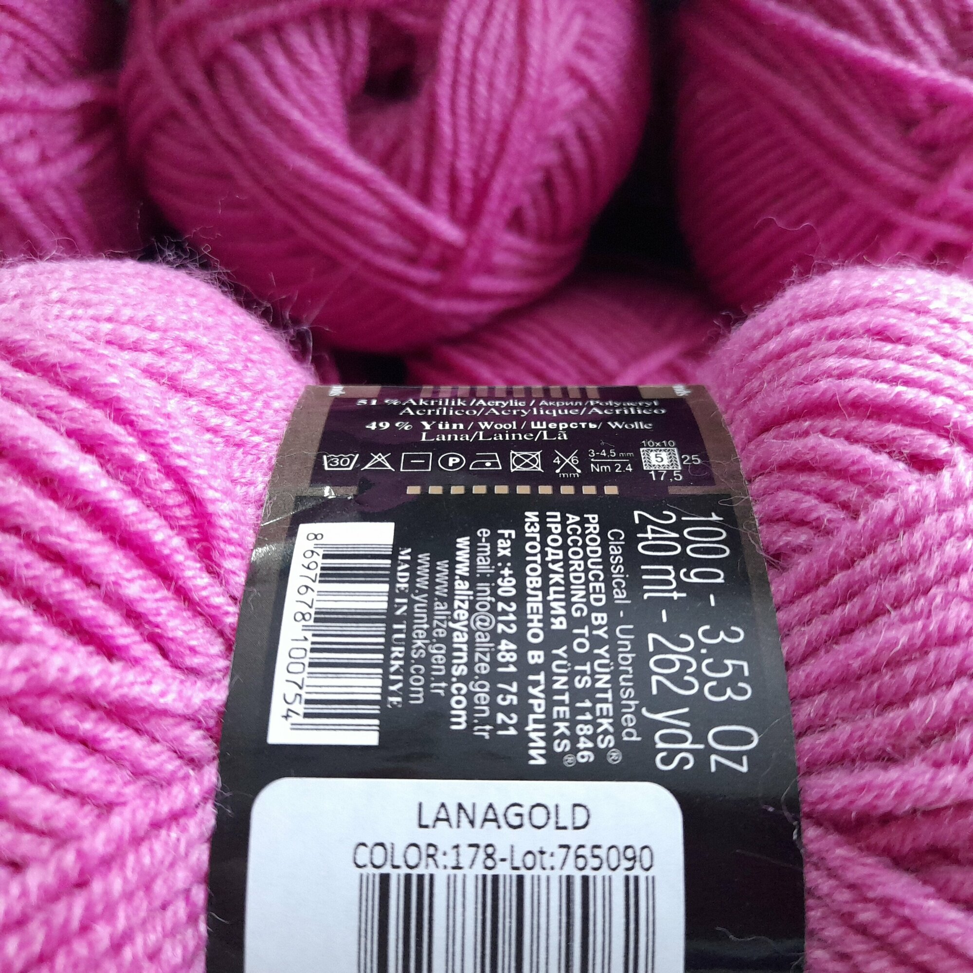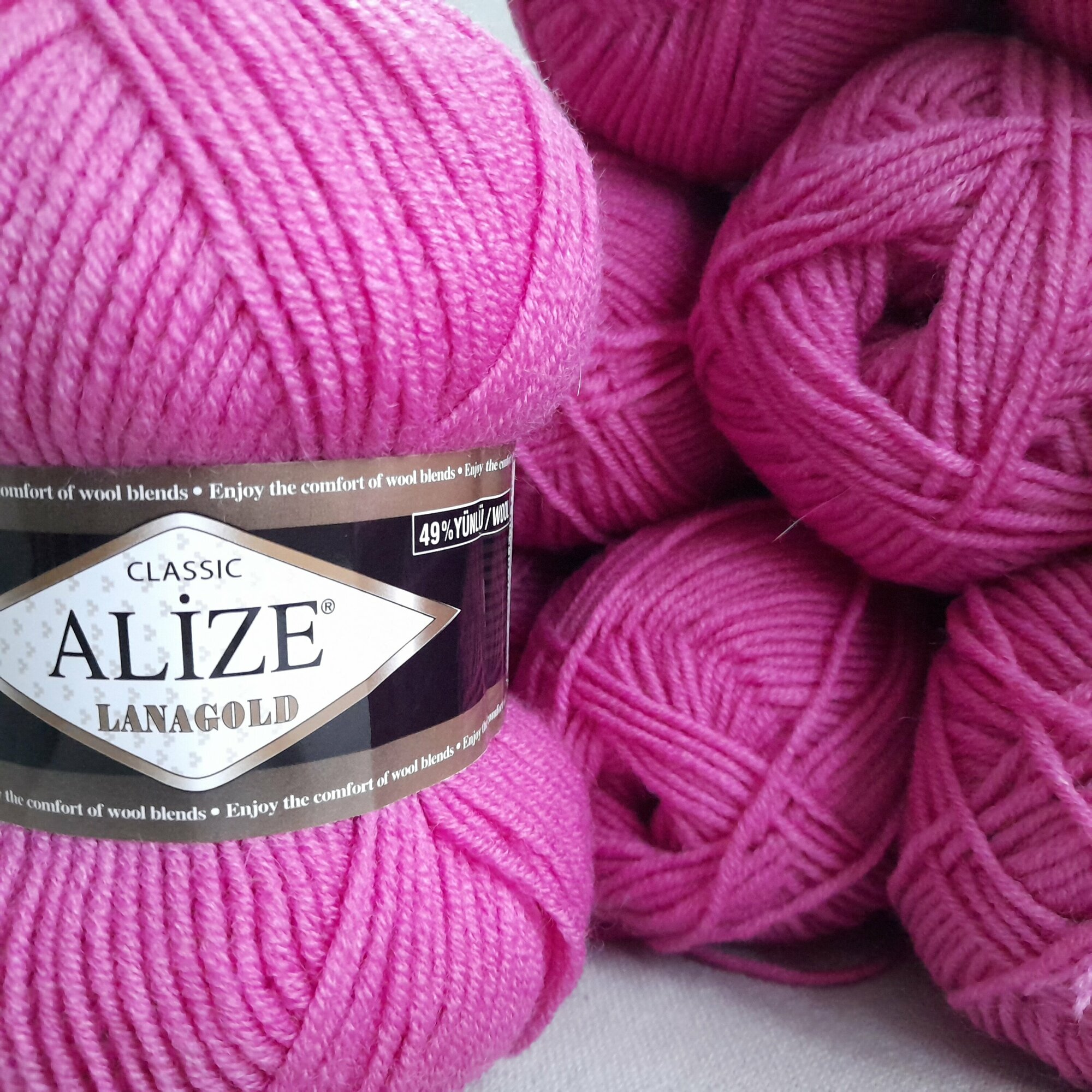 Пряжа "Alize LanaGold"-фуксия цвет,51% акрил,49% шерсть,100 г/240 м150,5 шт. интересное:
