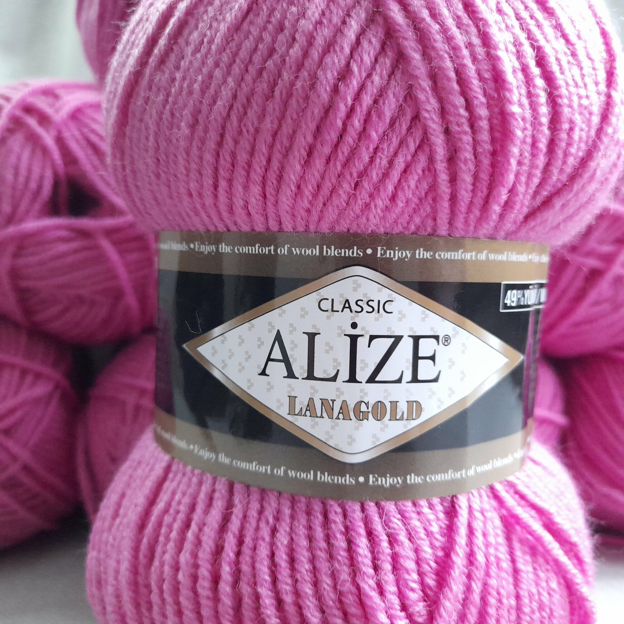 Купить Пряжа "Alize LanaGold"-фуксия цвет,51% акрил,49% шерсть,100 г/240 м150,5 шт.