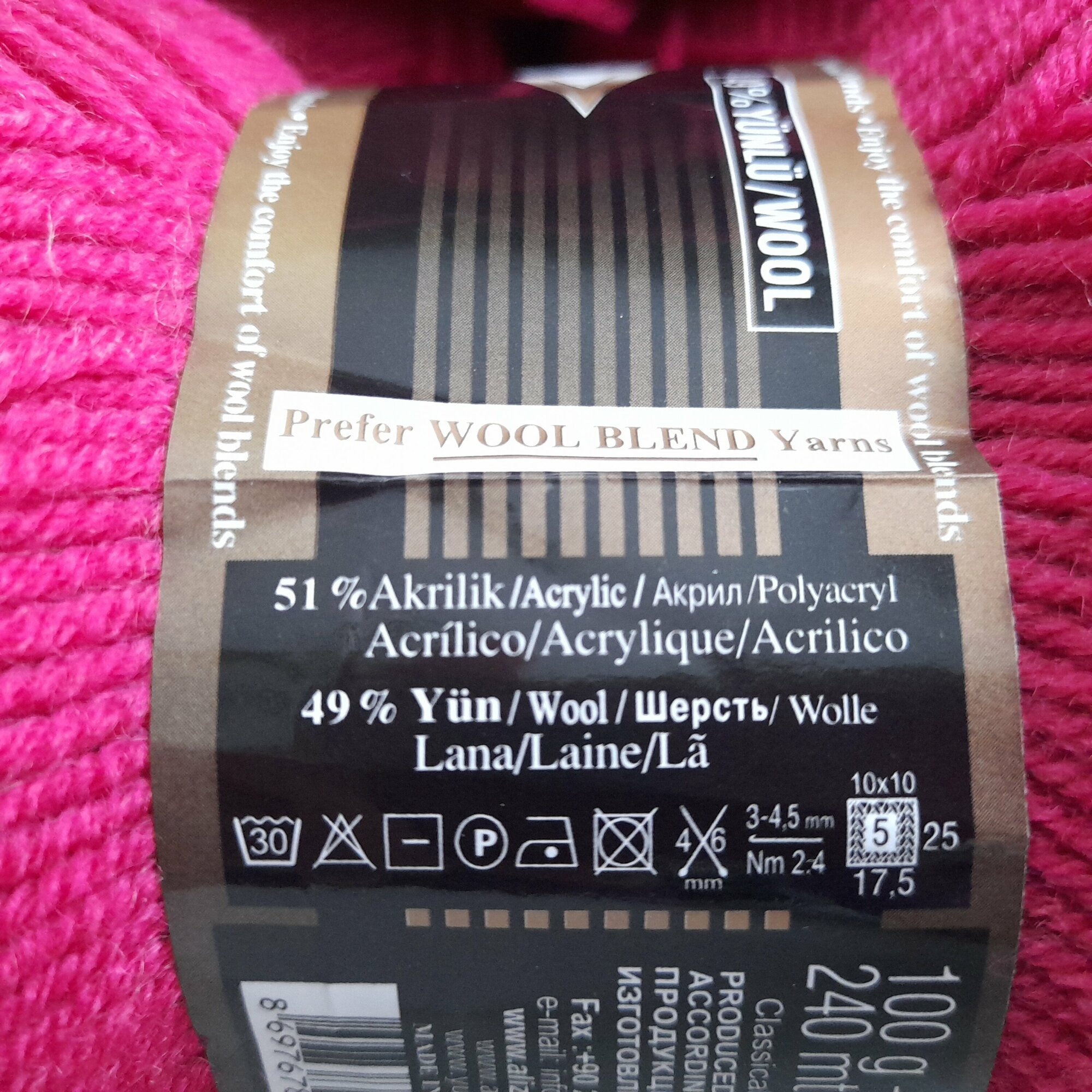 Пряжа "Alize LanaGold"-фуксия цвет,51% акрил,49% шерсть,100 г/240 м150,5 шт.