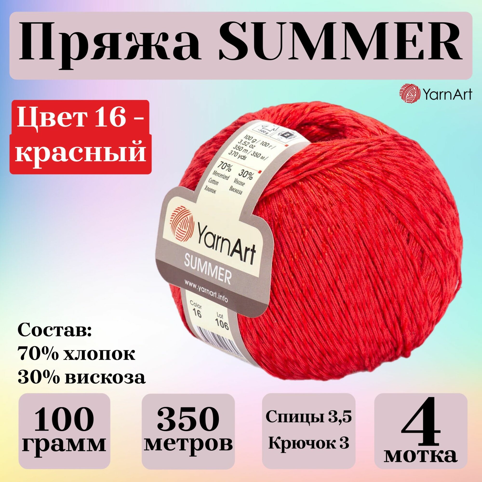 Купить Пряжа для вязания YarnArt Summer, цвет 16 красный, моток 100г, 350м, 4 мотка