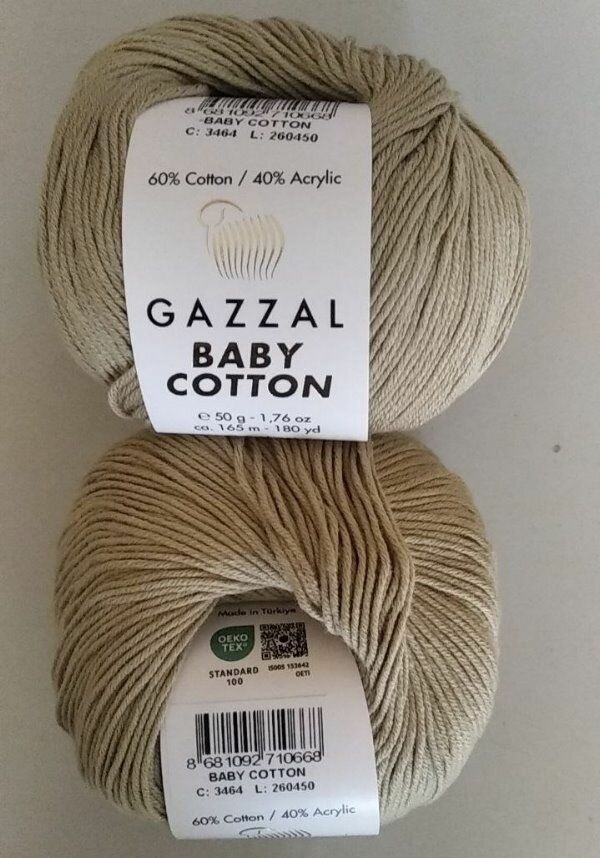 Купить Пряжа для вязания GAZZAL BABY COTTON (Газзал Бейби Коттон) / цвет 3464 - Лён (партия 260450) / 2шт / 165м/50г, хлопок 60%, акрил 40%