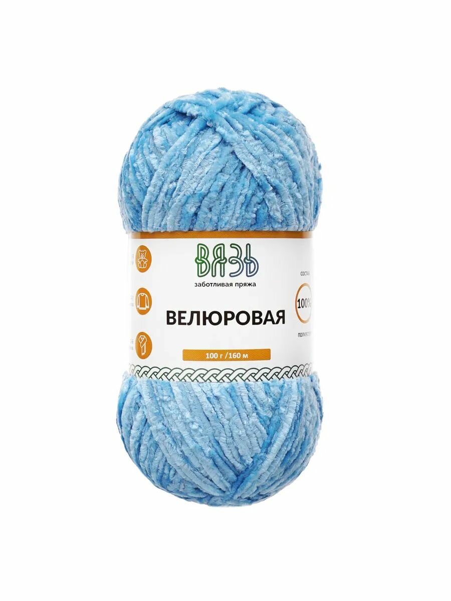 Купить Пряжа для вязания Вязь 'Велюровая' 100г, 160м (100% полиэстер) (10 голубой), 3 мотка