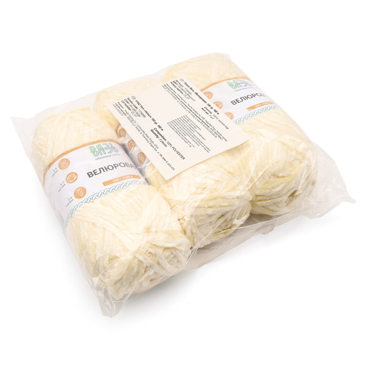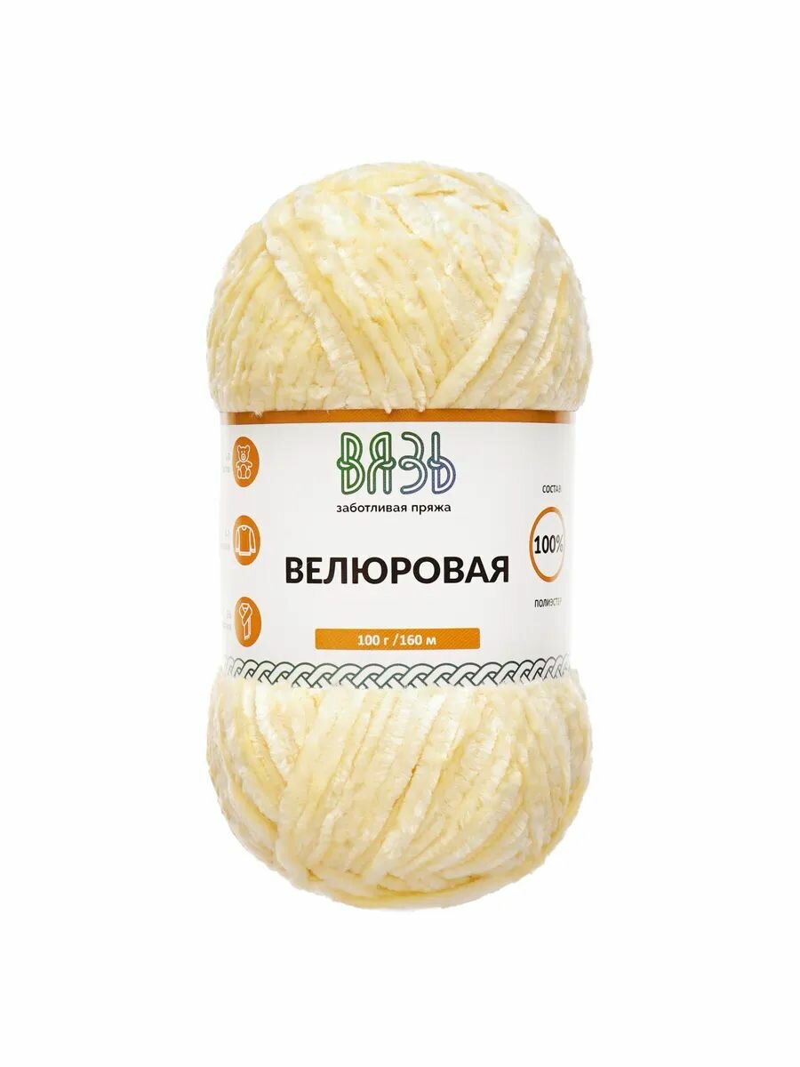 Пряжа для вязания Вязь 'Велюровая' 100г, 160м (100% полиэстер) (03 молочный), 3 мотка