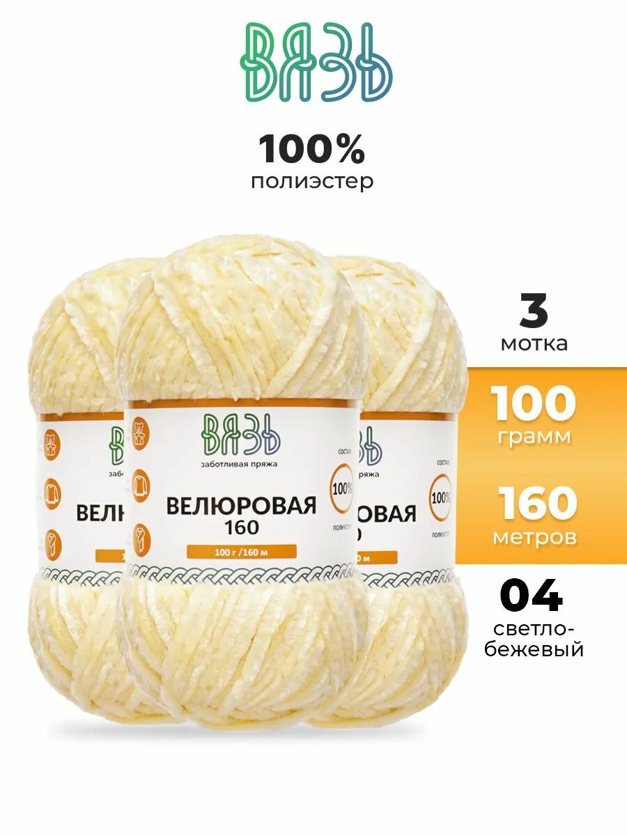 Купить Пряжа для вязания Вязь 'Велюровая' 100г, 160м (100% полиэстер) (04 светло-бежевый), 3 мотка