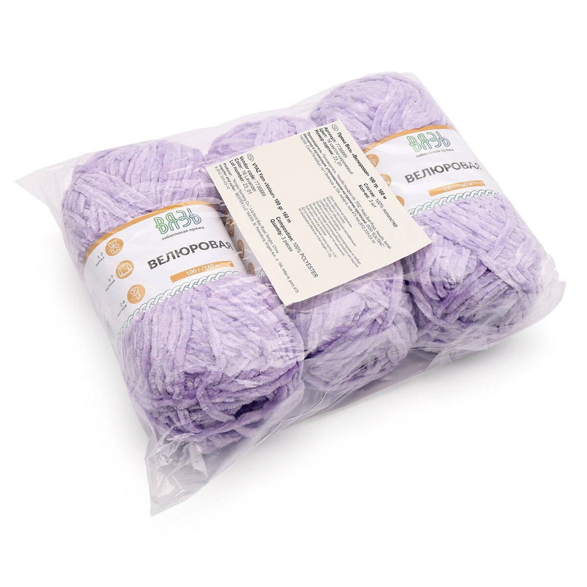 Купить Пряжа для вязания Вязь 'Велюровая' 100г, 160м (100% полиэстер) (16 светло-сиреневый), 3 мотка