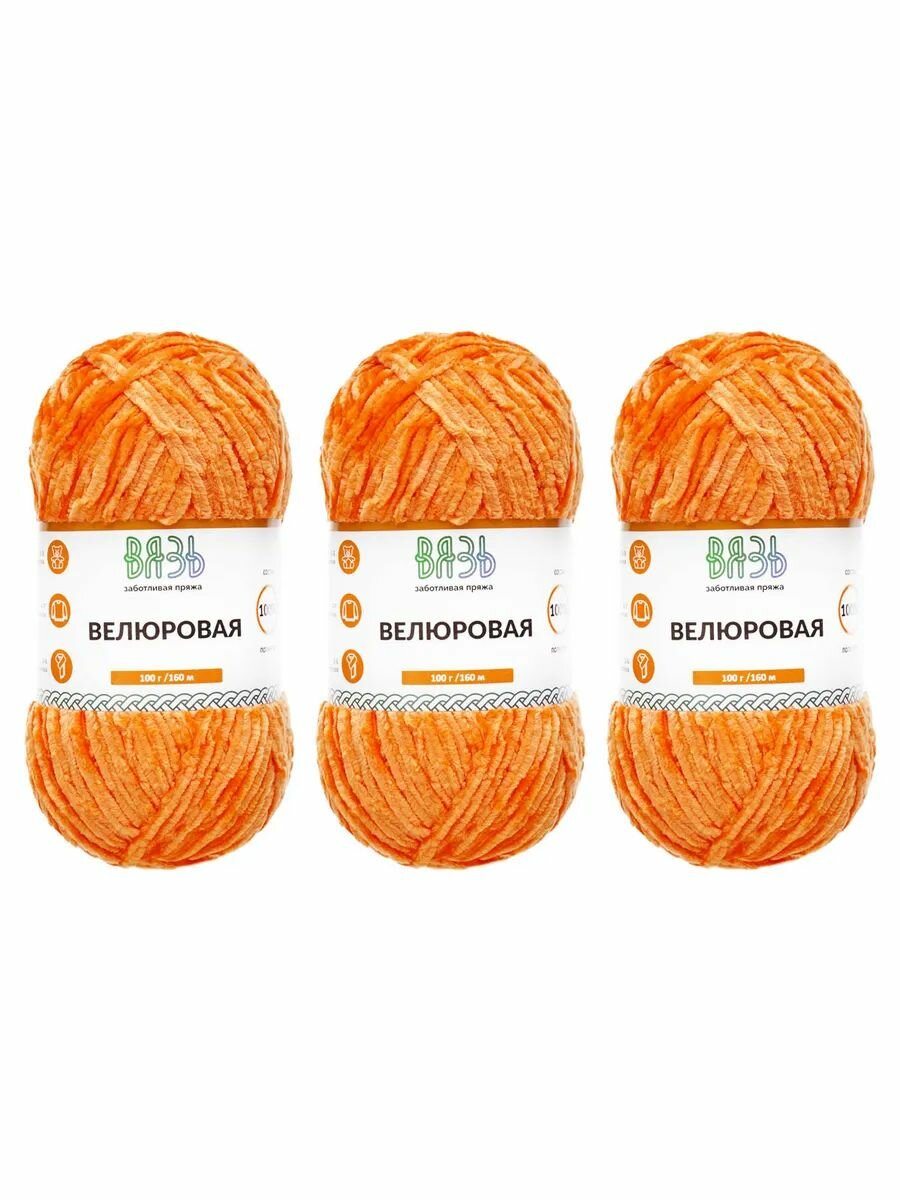Купить Пряжа для вязания Вязь 'Велюровая' 100г, 160м (100% полиэстер) (13 оранжевый), 3 мотка
