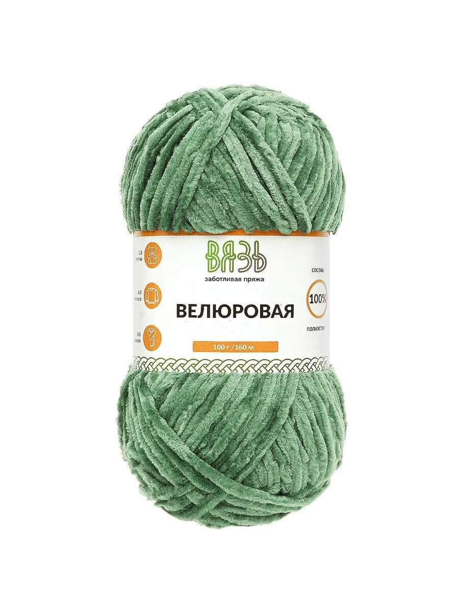 Купить Пряжа для вязания Вязь 'Велюровая' 100г, 160м (100% полиэстер) (15 зеленый), 3 мотка