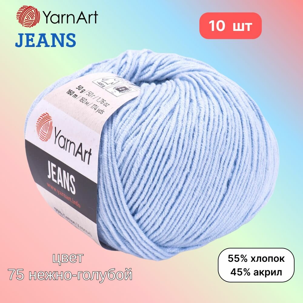 Купить Пряжа YarnArt Jeans, цвет нежно-голубой 75, 10 мотков, 50г/160м, состав 45% акрил, 55% хлопок, ярнарт джинс