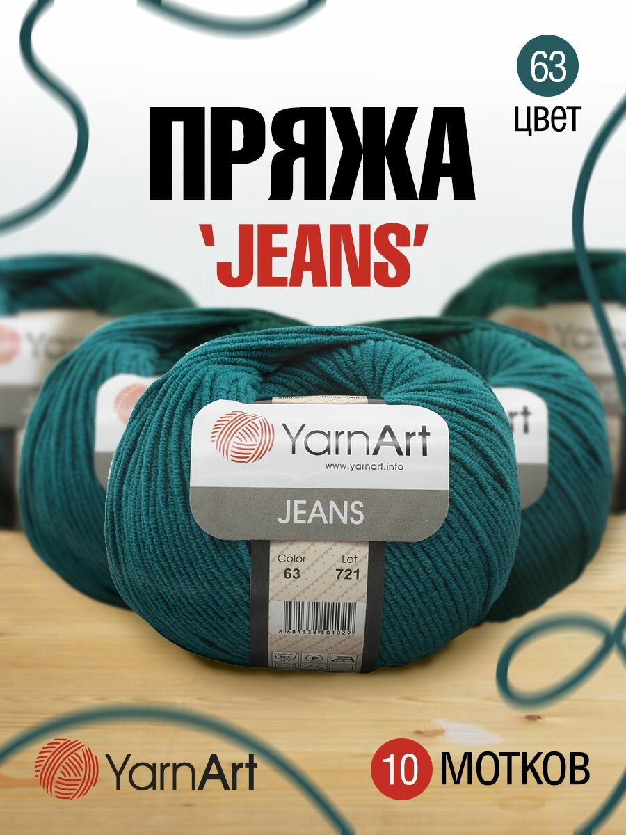 Купить Пряжа для вязания YarnArt 'Jeans' 50г, 160м (55% хлопок, 45% полиакрил) (63 темная бирюза), 10 мотков
