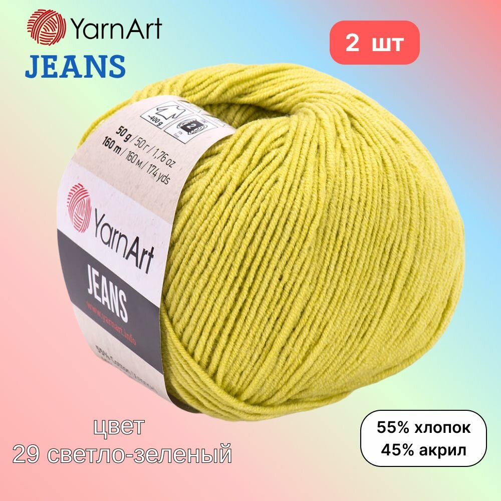 Купить Пряжа YarnArt Jeans, цвет светло-зеленый 29, 2 мотка, 50г/160м, состав 45% акрил, 55% хлопок, ярнарт джинс