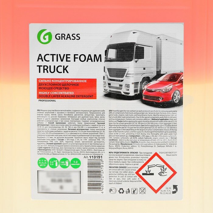 Активная пена active foam truck, для бесконтактной мойки легкового и грузового автотранспорта, конт, GRASS 113190 (1 шт.)