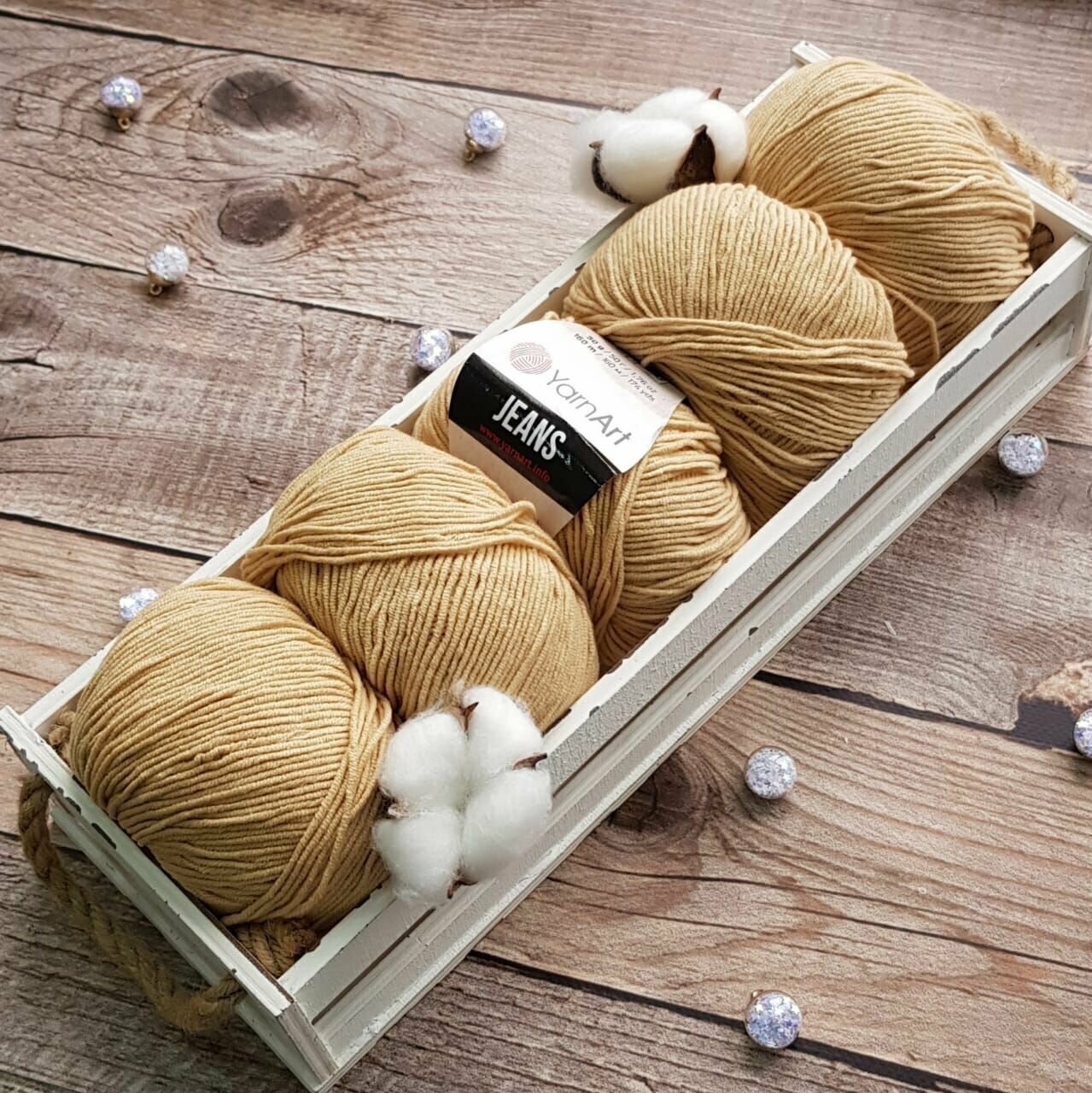 Пряжа YarnArt Jeans, цвет шампанское 73, 2 мотка, 50г/160м, состав 45% акрил, 55% хлопок, ярнарт джинс