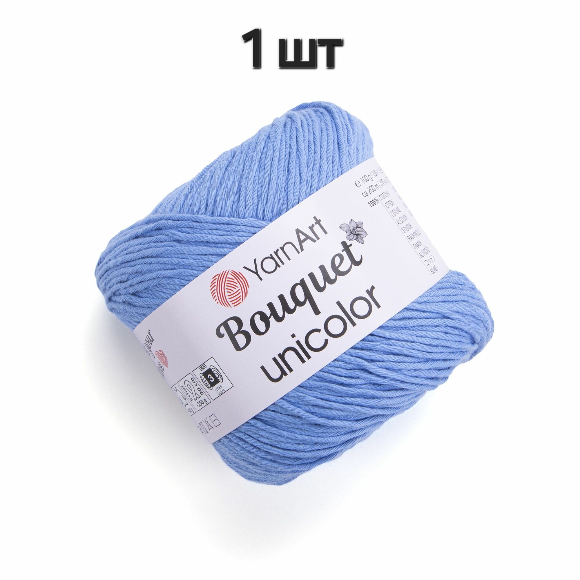 Купить Пряжа YarnArt Bouquet Unicolor Голубой (3223) 1 моток 100 г/200 м (100% хлопок) ярнарт букет юниколор однотонная