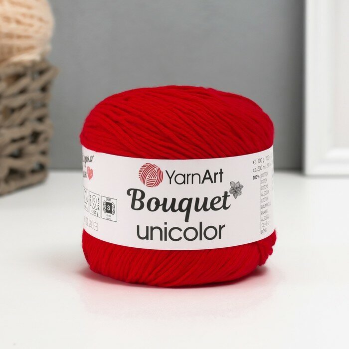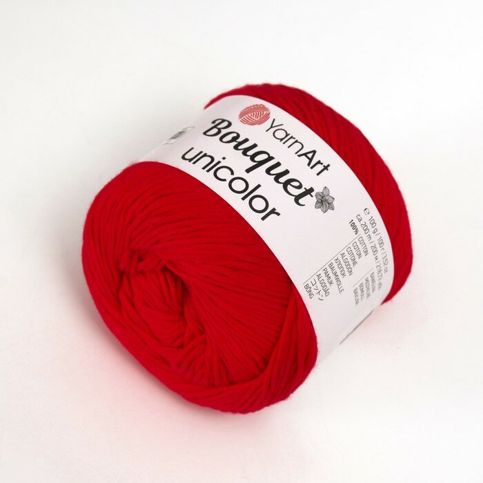 Купить Пряжа YarnArt Bouquet Unicolor Красный (3217) 1 моток 100 г/200 м (100% хлопок) ярнарт букет юниколор однотонная