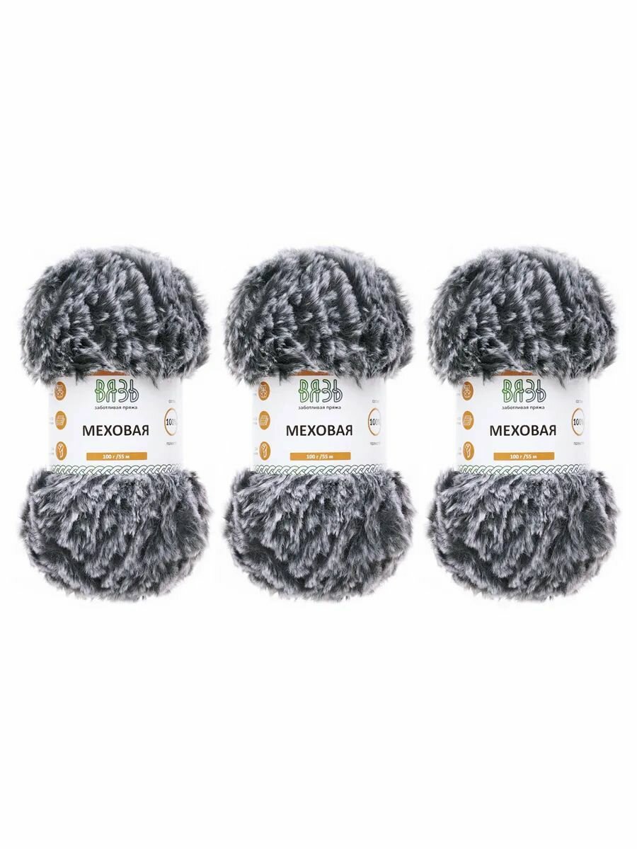 Пряжа для вязания Вязь 'Меховая' 100г, 55м (100% полиэстер) (07 темно-серый), 3 мотка