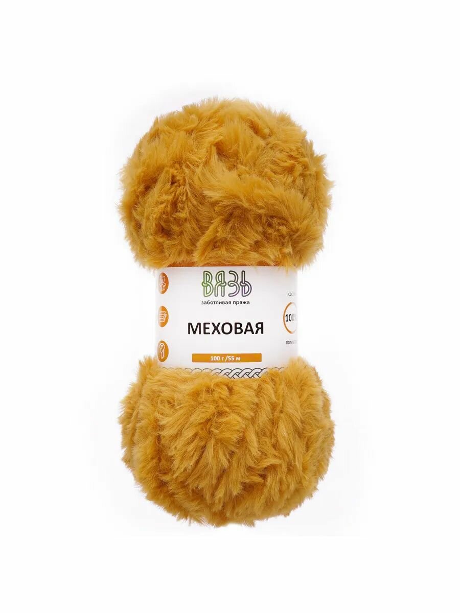 Пряжа для вязания Вязь 'Меховая' 100г, 55м (100% полиэстер) (13 горчичный), 3 мотка