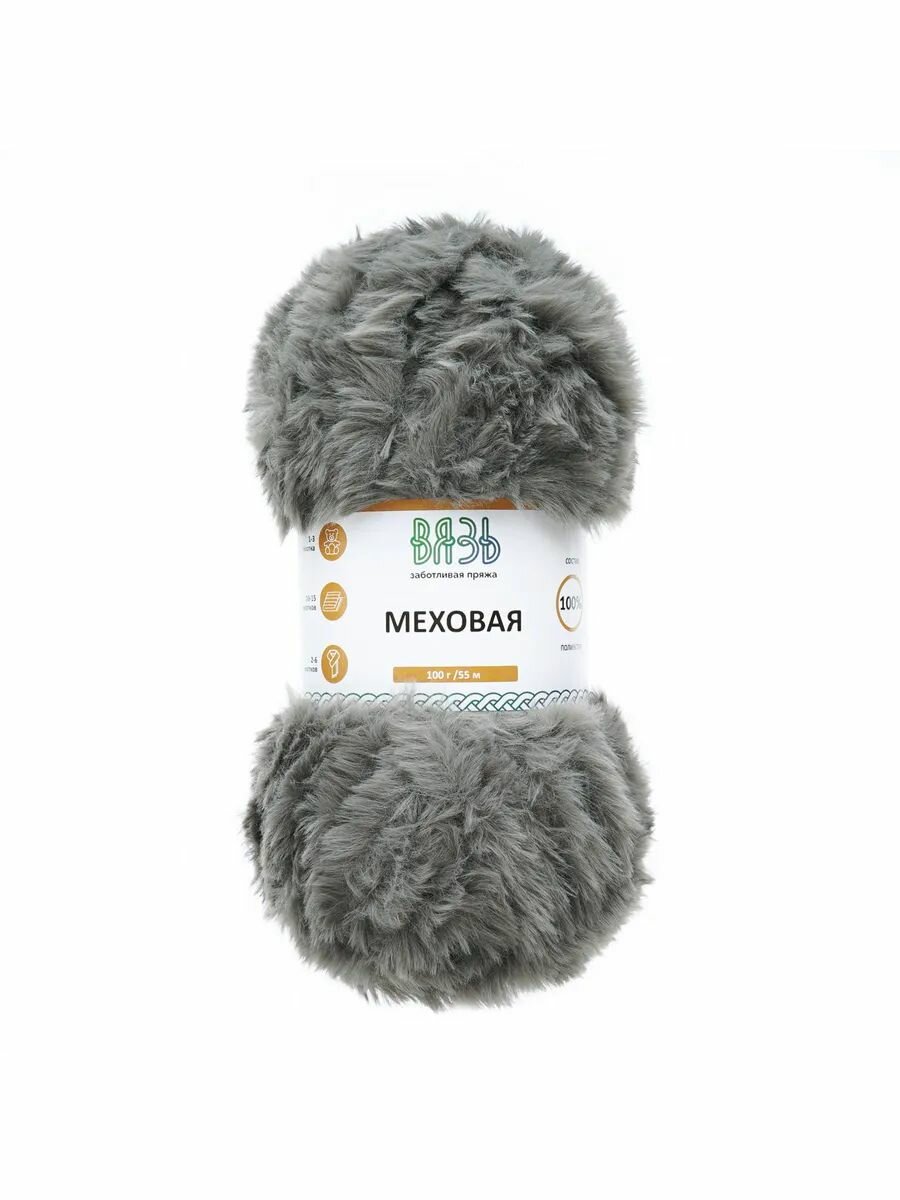 Купить Пряжа для вязания Вязь 'Меховая' 100г, 55м (100% полиэстер) (06 серый), 3 мотка