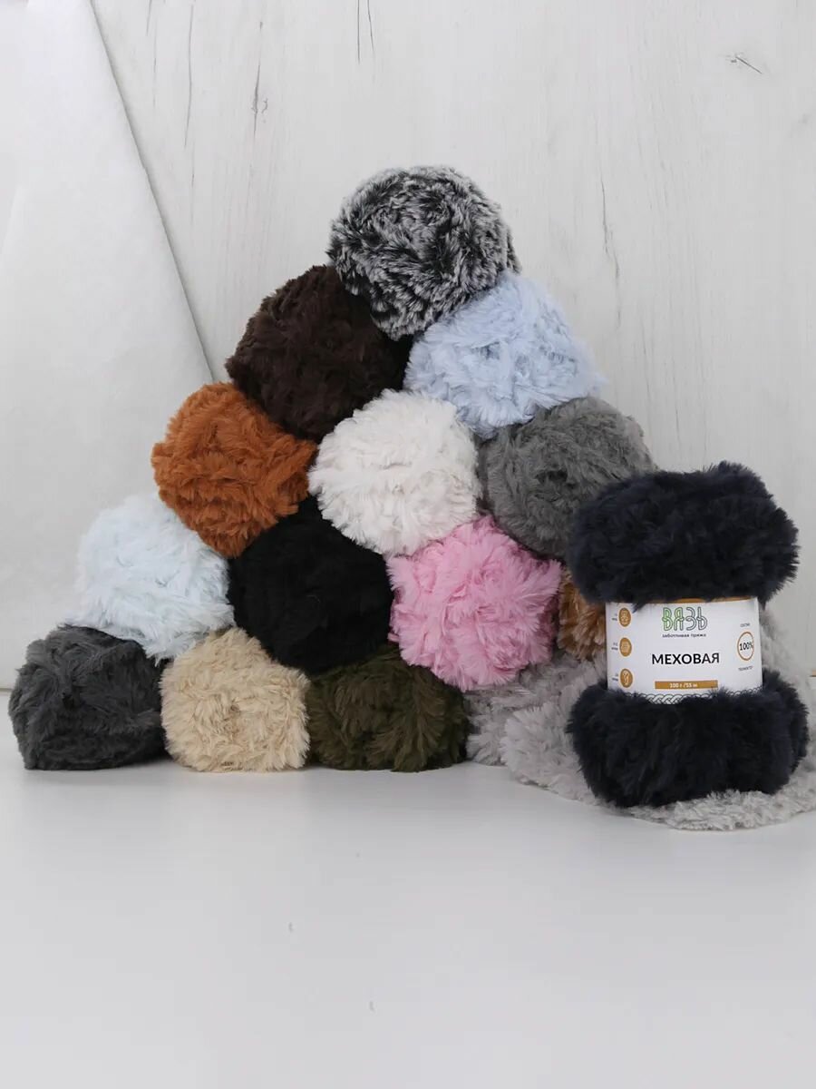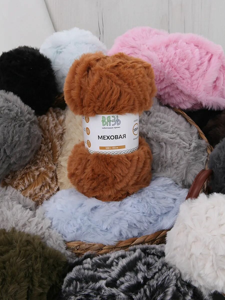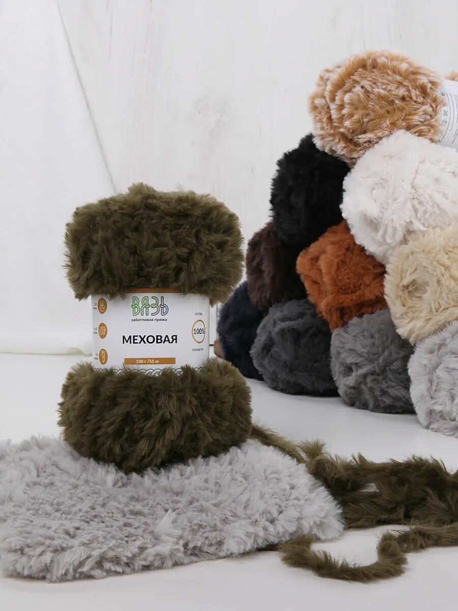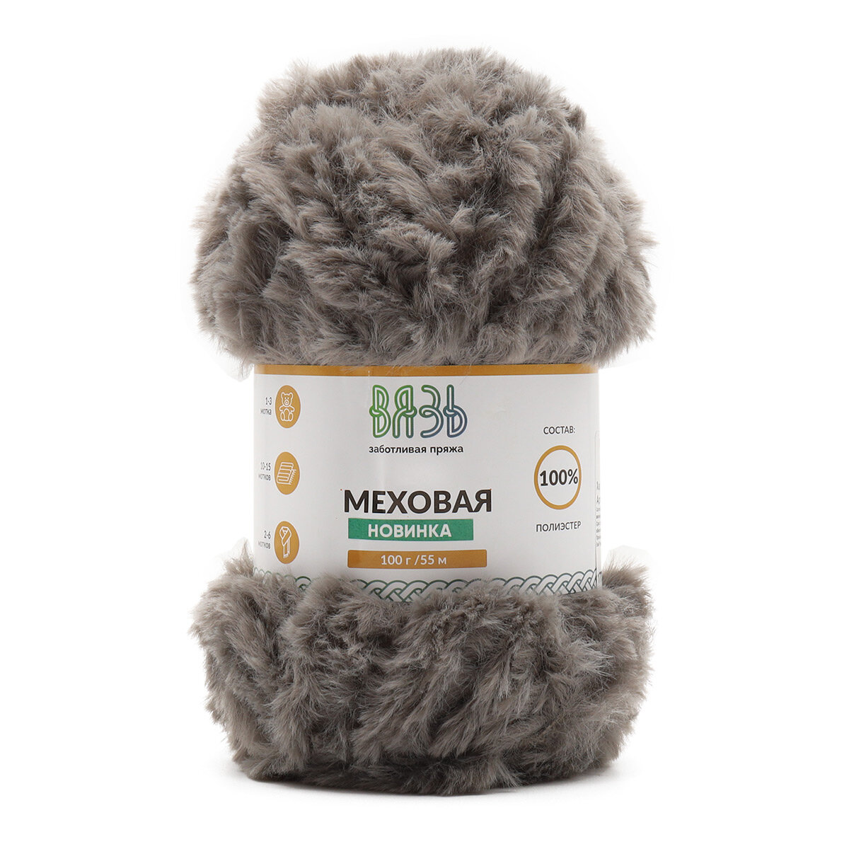 СохранитьПряжа для вязания Вязь 'Меховая' 100г, 55м (100% полиэстер) (06 серый), 3 мотка интересное: