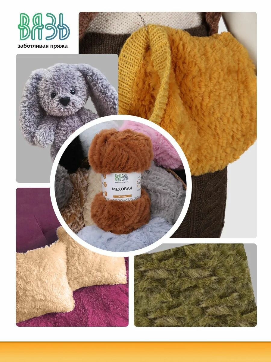Пряжа для вязания Вязь 'Меховая' 100г, 55м (100% полиэстер) (15 коричневый), 3 мотка