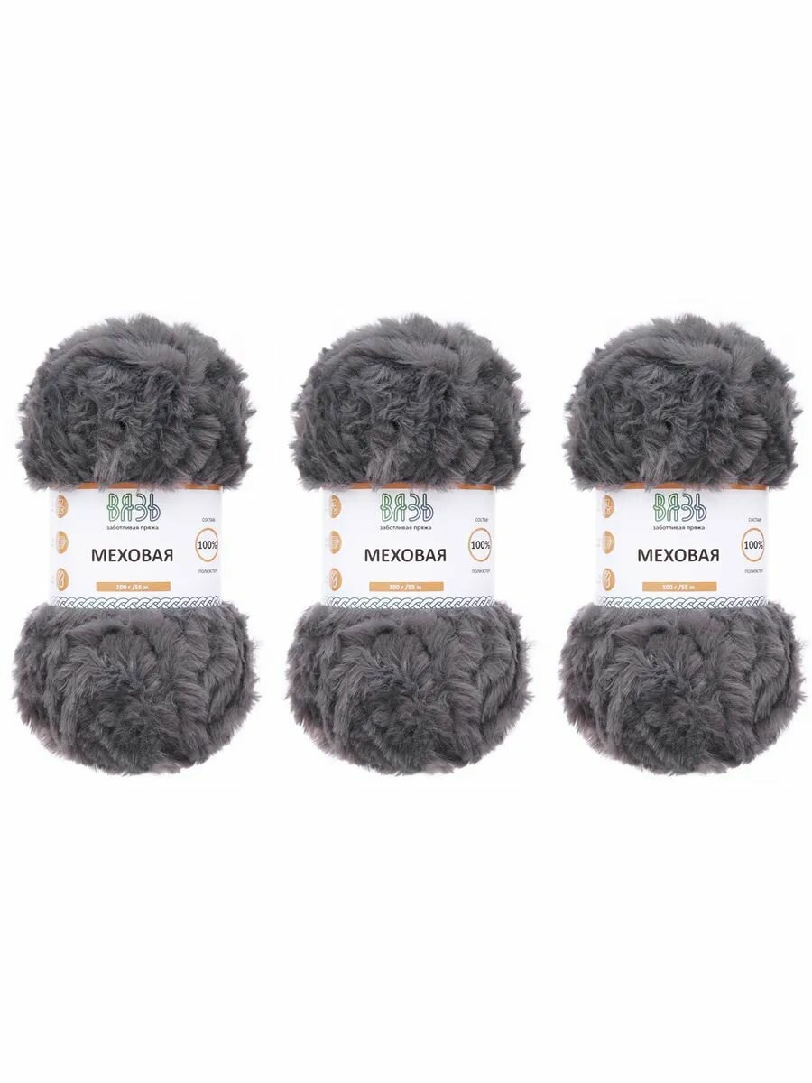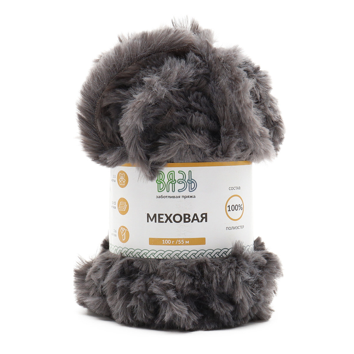Купить Пряжа для вязания Вязь 'Меховая' 100г, 55м (100% полиэстер) (07 темно-серый), 3 мотка