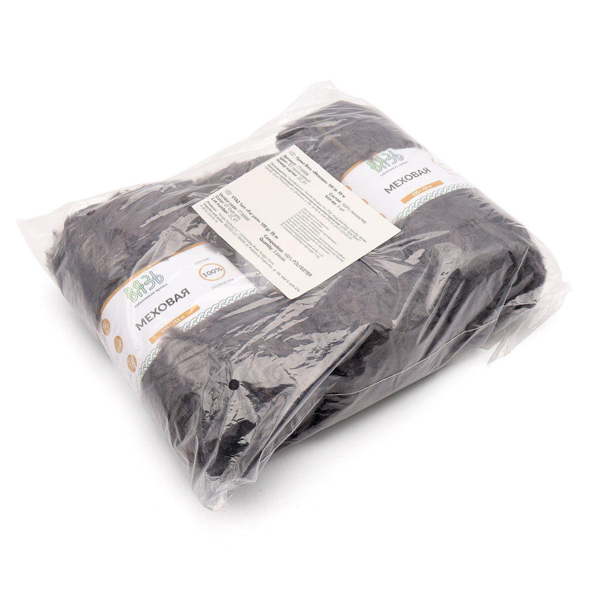 Пряжа для вязания Вязь 'Меховая' 100г, 55м (100% полиэстер) (18 черный), 3 мотка