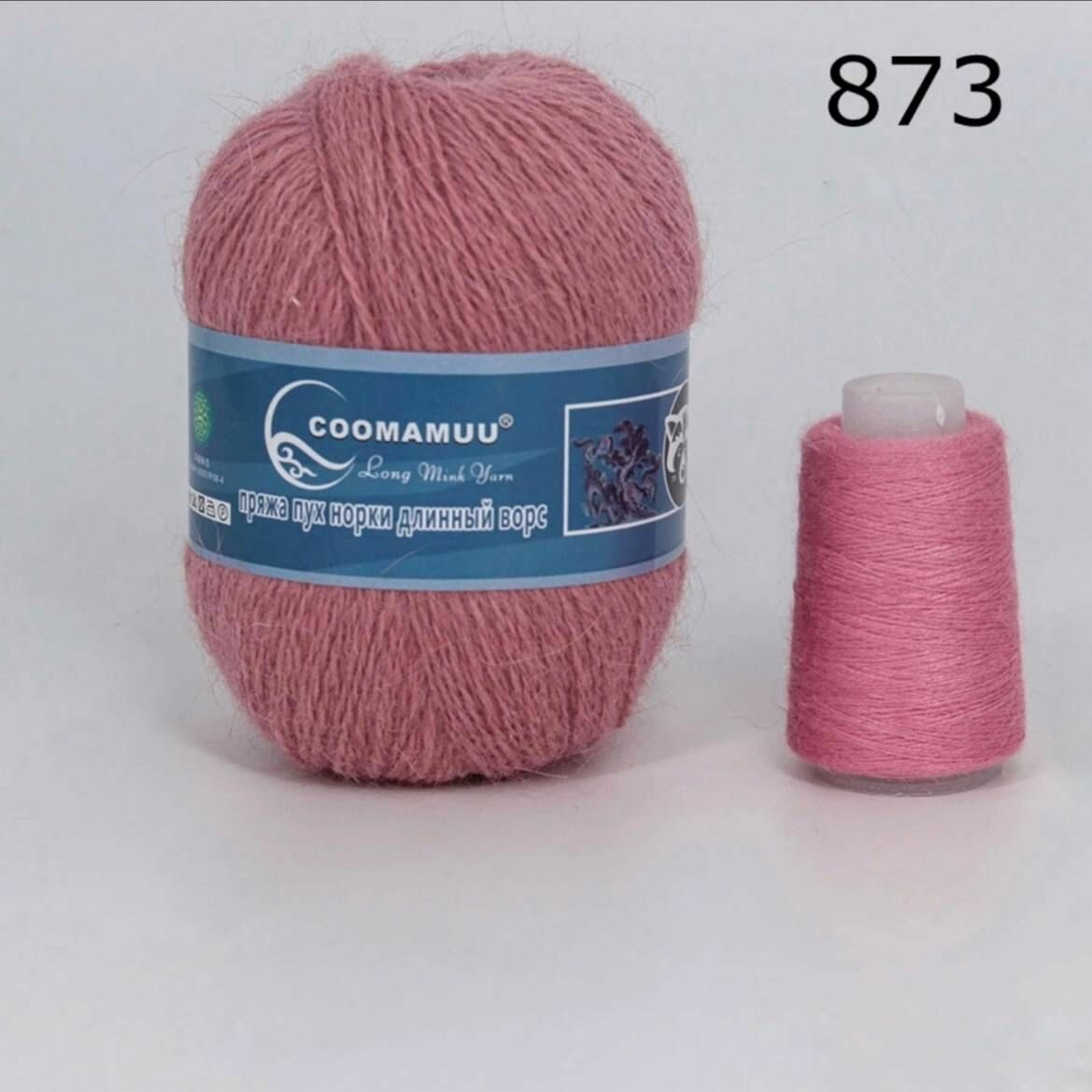 Пряжа пух норки цвет 851 сухая роза , 1 моток+1 катушка дополнительной нити,350м/50гр, 90%пух норки,10%ПА