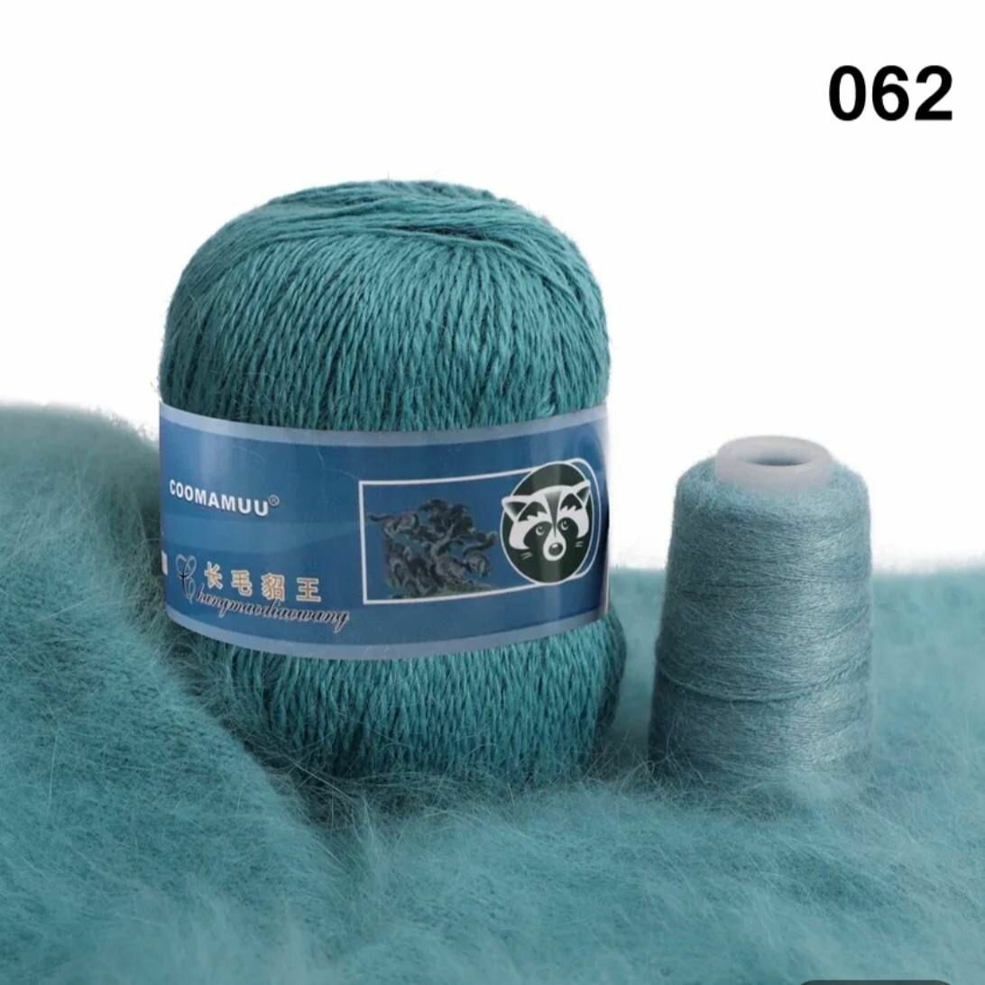Купить Пряжа пух норки цвет 062-морская волна , 1 моток+1 катушка дополнительной нити,350м/50гр, 90%пух норки,10%ПА