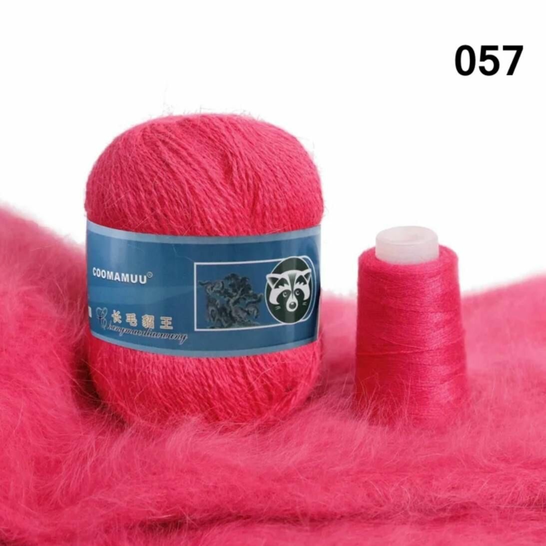 Купить Пряжа пух норки цвет 057-малина , 1 моток+1 катушка дополнительной нити,350м/50гр, 90%пух норки,10%ПА