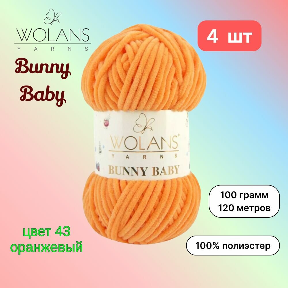 Купить Пряжа Wolans Bunny Baby Оранжевый (43) 4 мотка 100 г/120 м (100% микрополиэстер) воланс банни беби