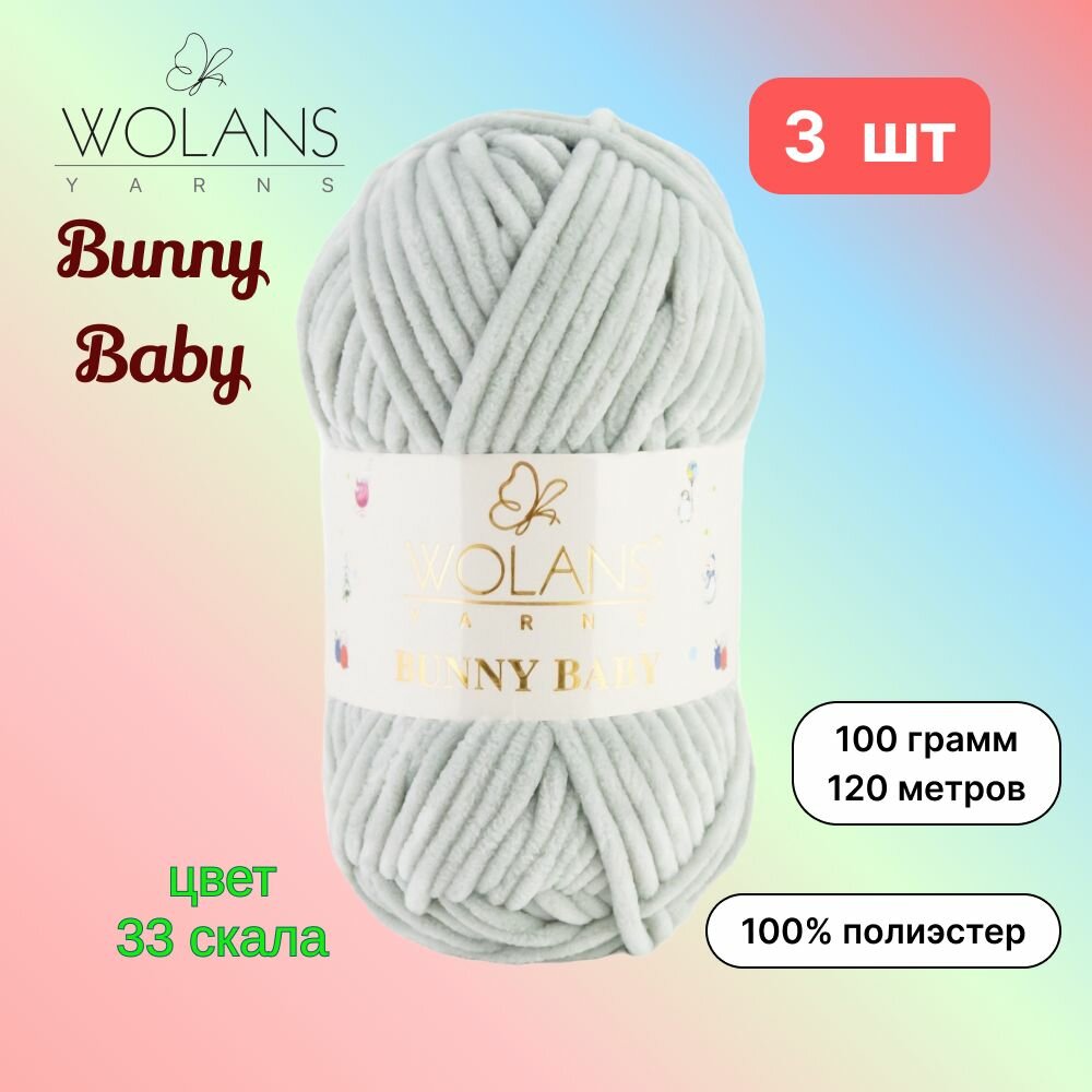 Купить Пряжа Wolans Bunny Baby Скала (33) 3 мотка 100 г/120 м (100% микрополиэстер) воланс банни беби