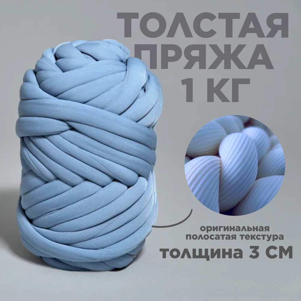 СохранитьТрубчатая Толстая пряжа Полоски 1 кг для вязания руками. Толщина нити 3 см, оттенок джинс интересное: