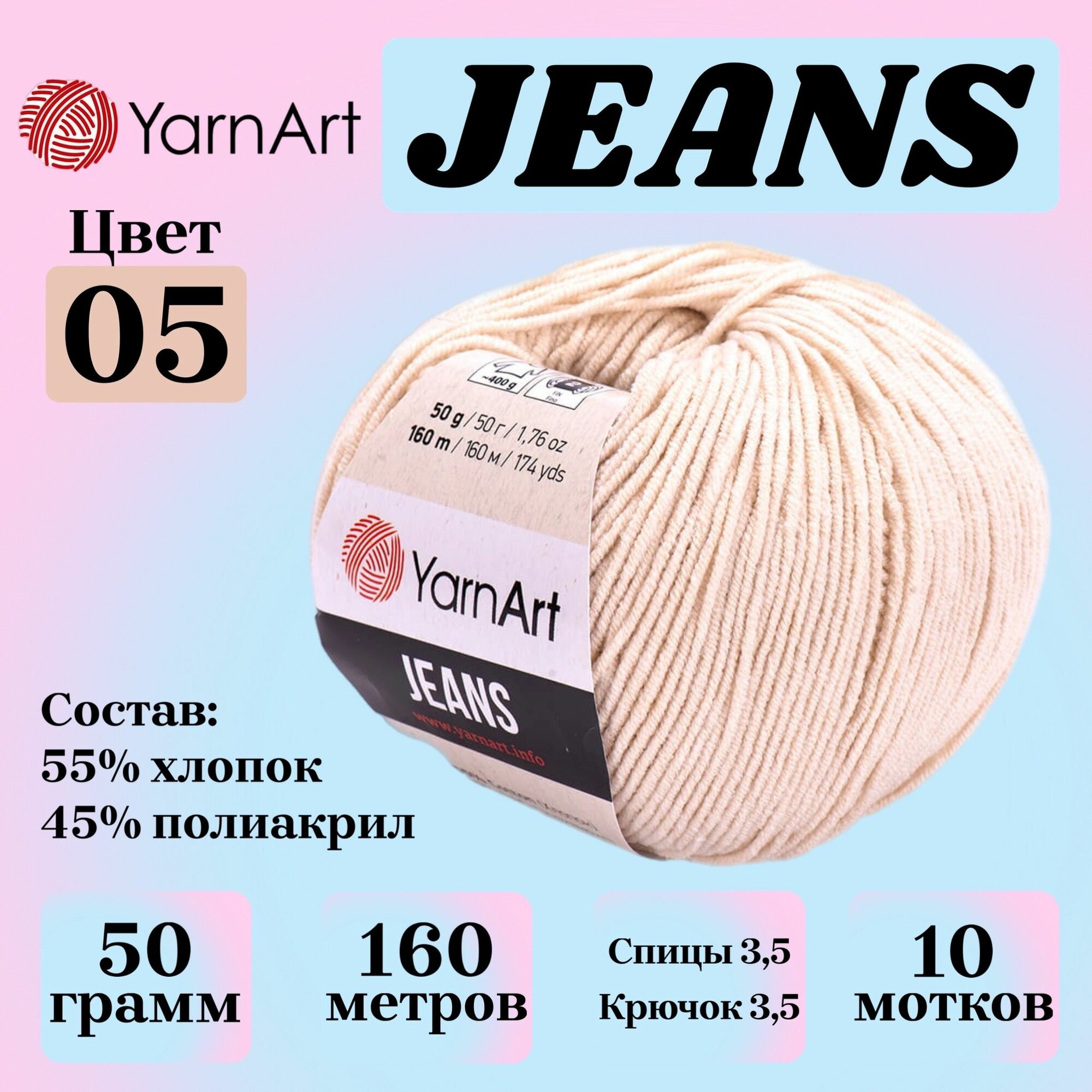 Купить Пряжа для вязания YarnArt Jeans, цвет 05 светло-бежевый, 50г, 160м, 10шт/упак