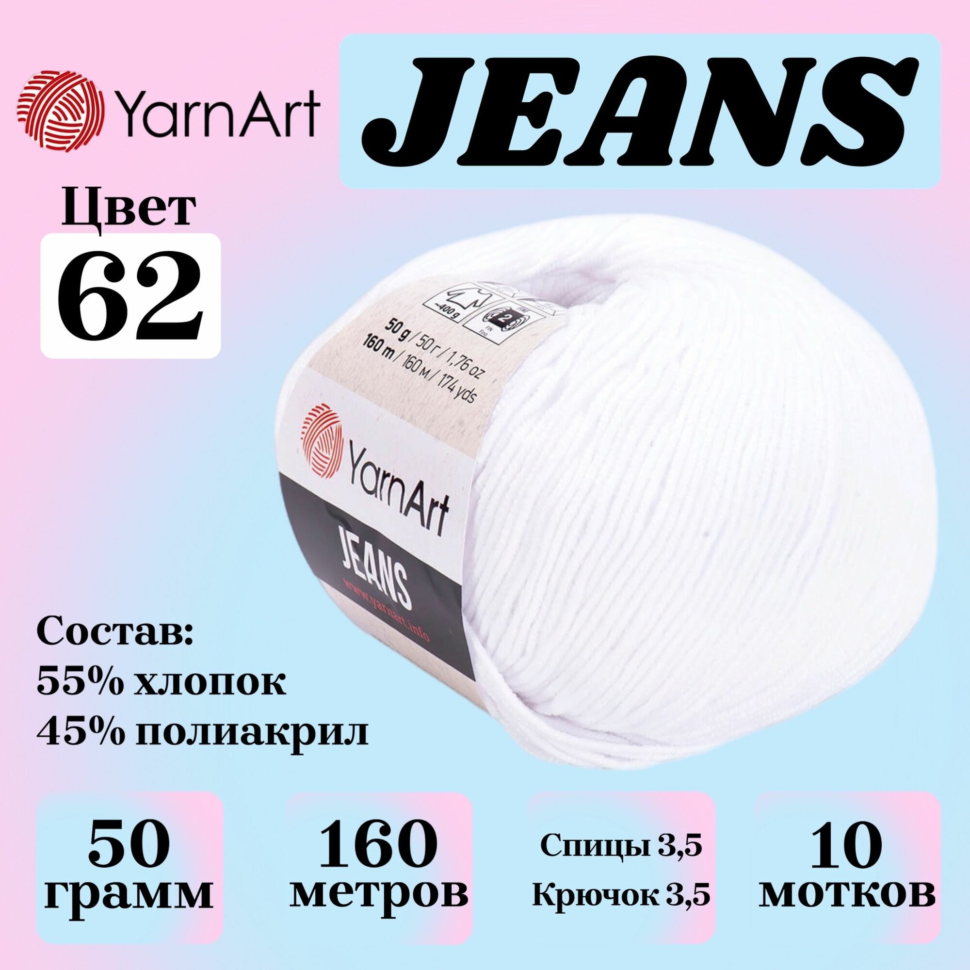 Купить Пряжа для вязания YarnArt Jeans, цвет 62 супер-белый, 50г, 160м, 10шт/упак