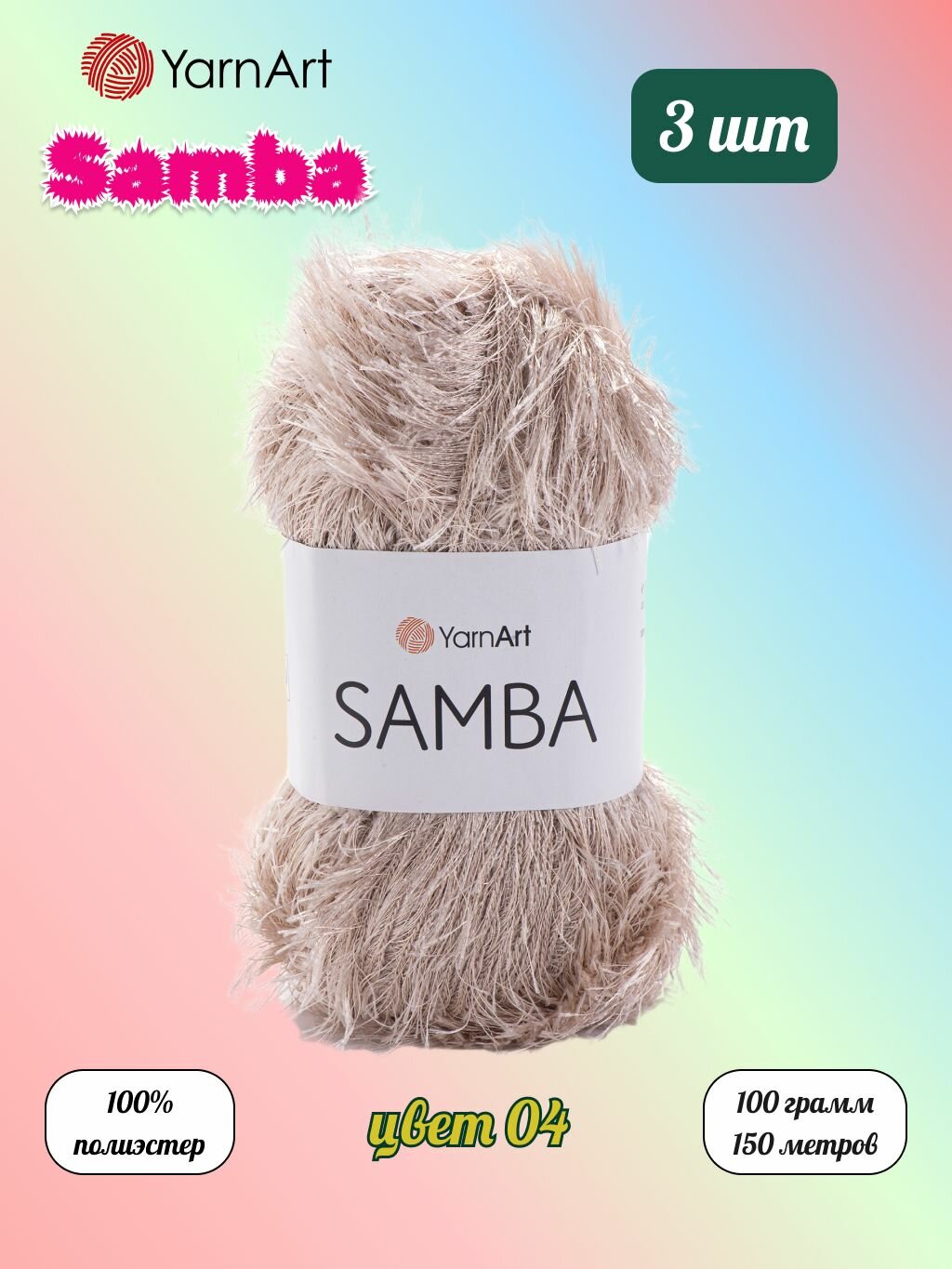 Купить Пряжа YarnArt Samba Светло-бежевый (04) 3 мотка 100 г/150 м (100% полиэстер) ярнарт самба