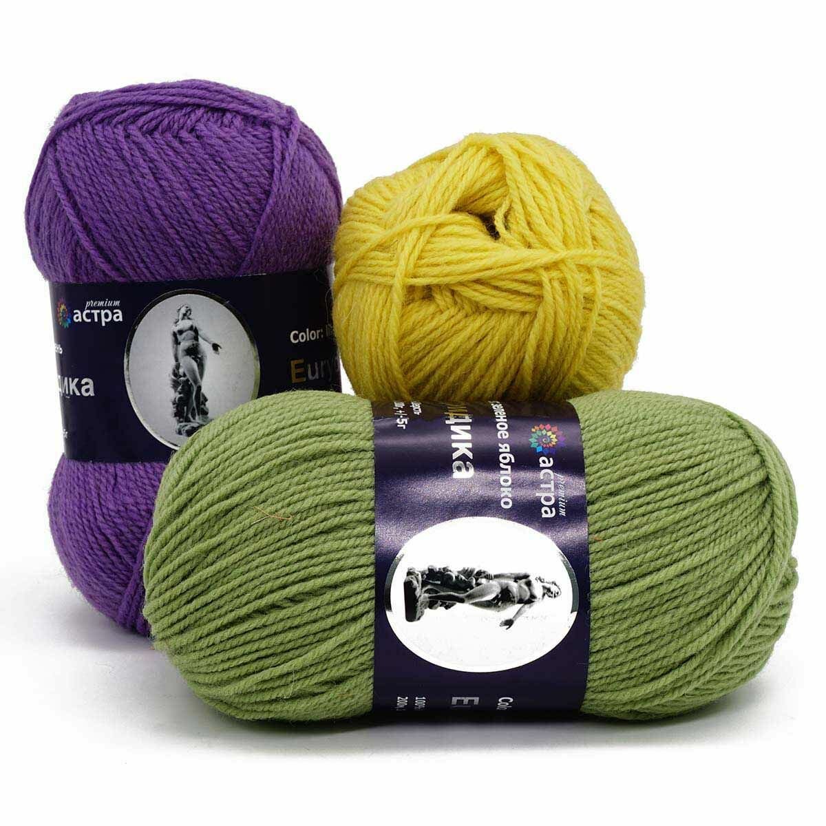 Пряжа для вязания Astra Premium 'Эвридика' 100г, 200м (100% овечья шерсть) (08 лимонный), 3 мотка