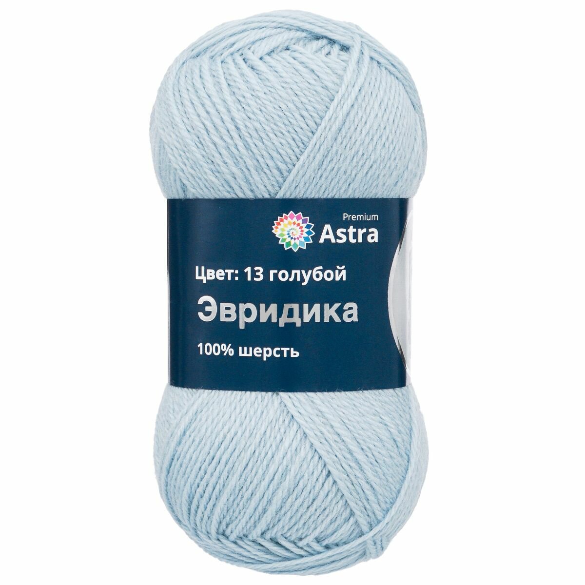 Купить Пряжа для вязания Astra Premium 'Эвридика' 100г, 200м (100% овечья шерсть) (13 голубой), 3 мотка