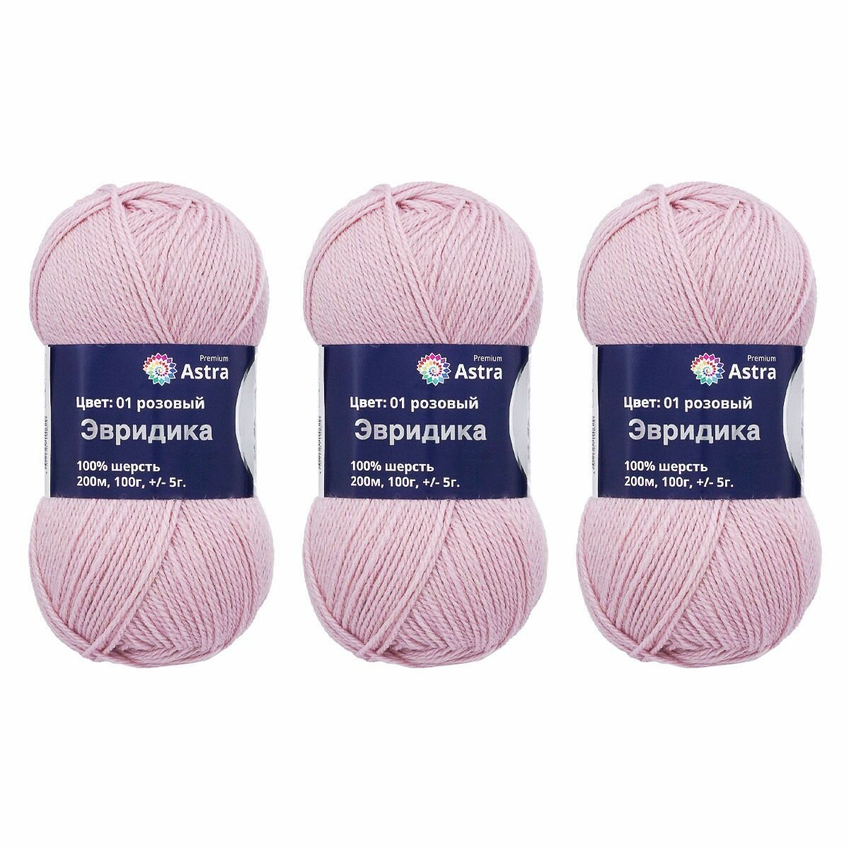 Купить Пряжа для вязания Astra Premium 'Эвридика' 100г, 200м (100% овечья шерсть) (01 розовый), 3 мотка